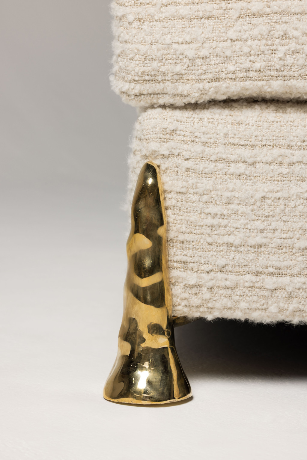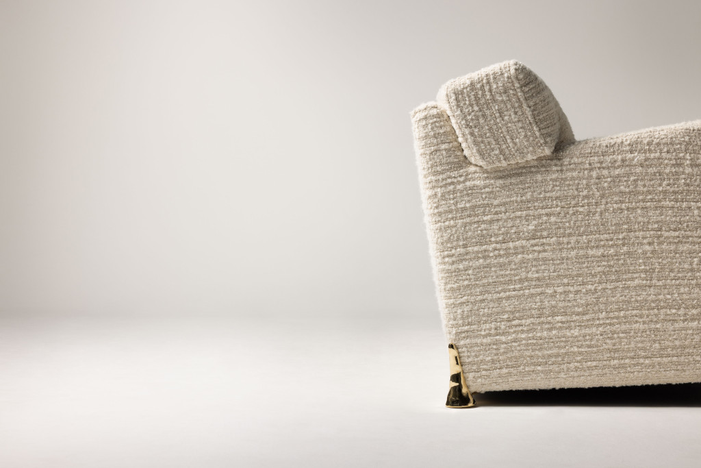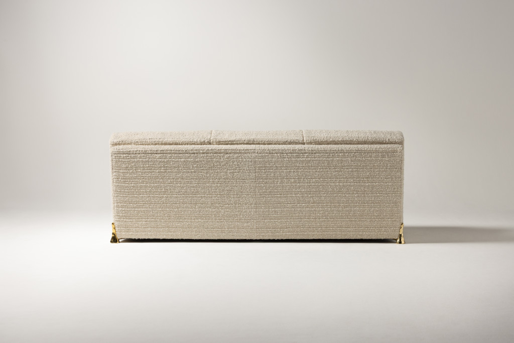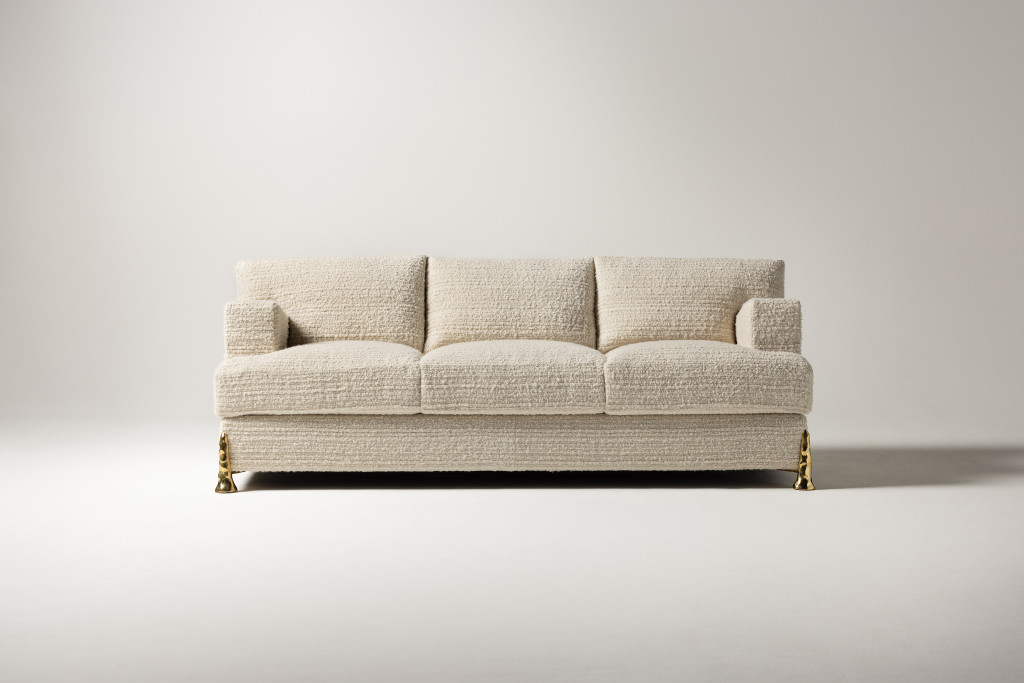 UPHOLSTERED SOFA WITH CAST BRASS FEET