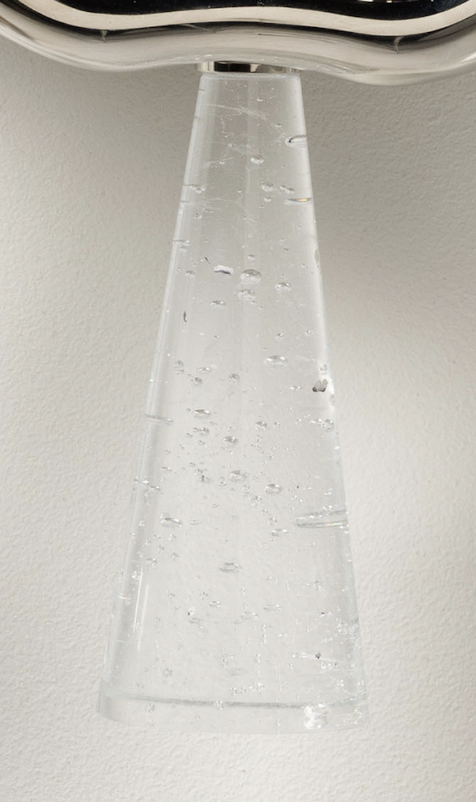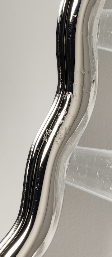 NICKEL PLATED CAST BRASS MIRROR WITH ILLUMINATED CAST GLASS ELEMENTS