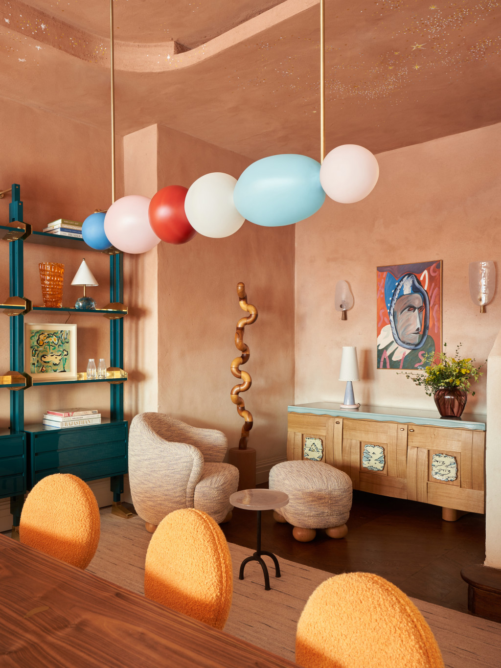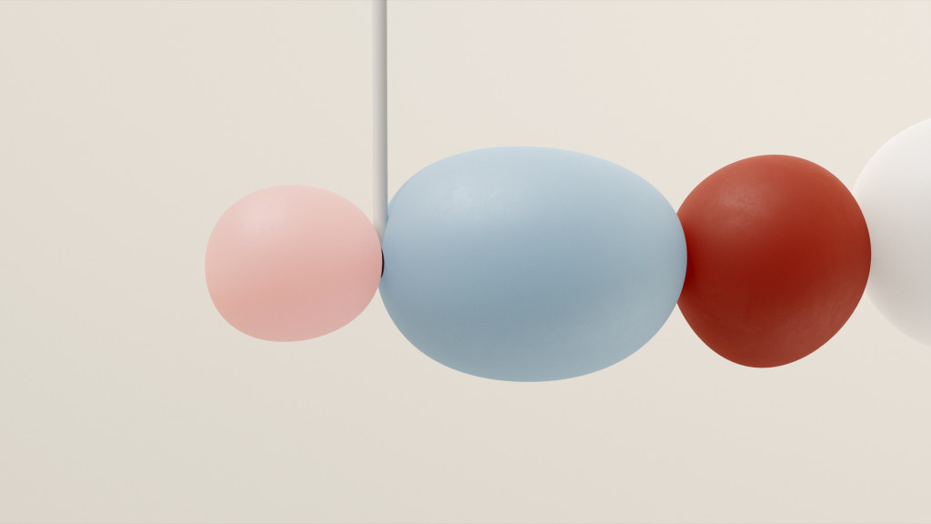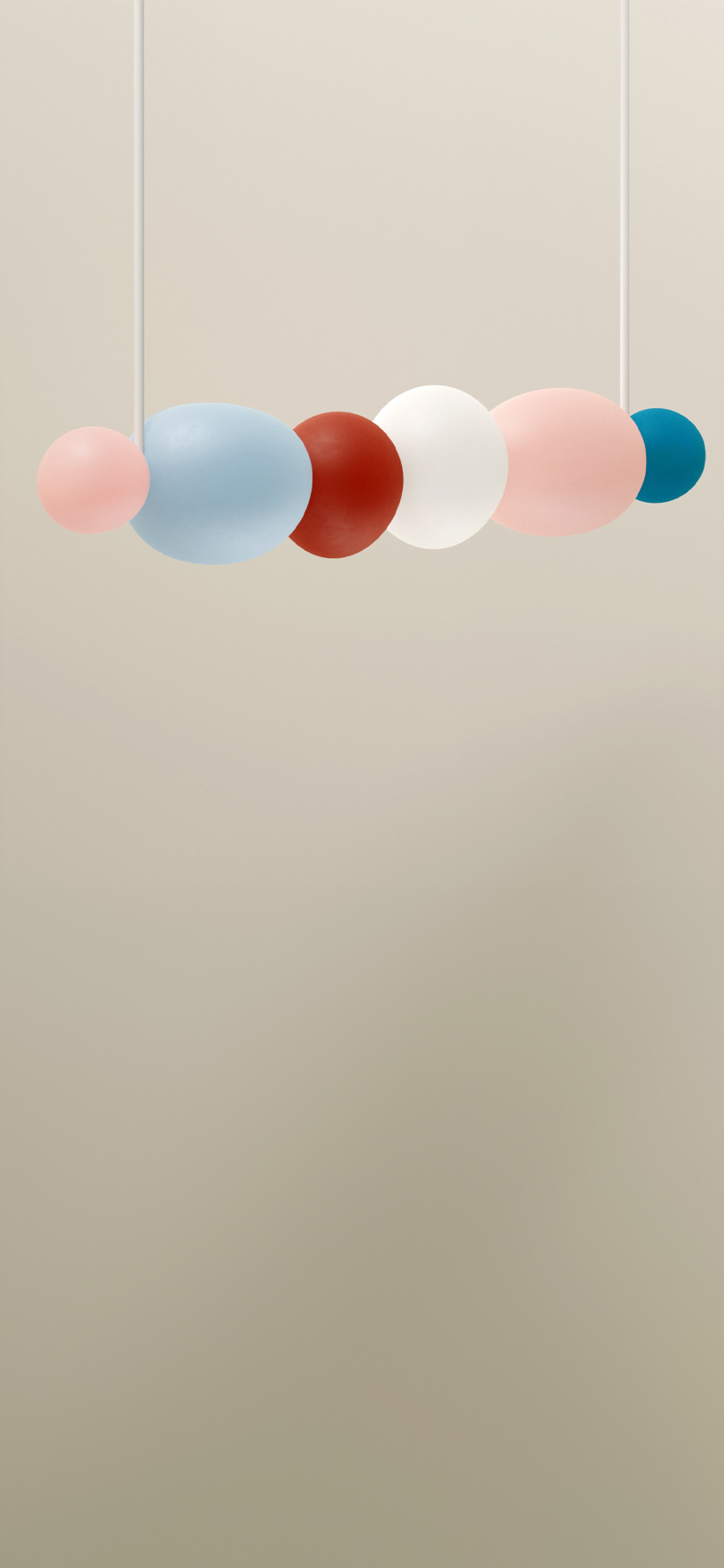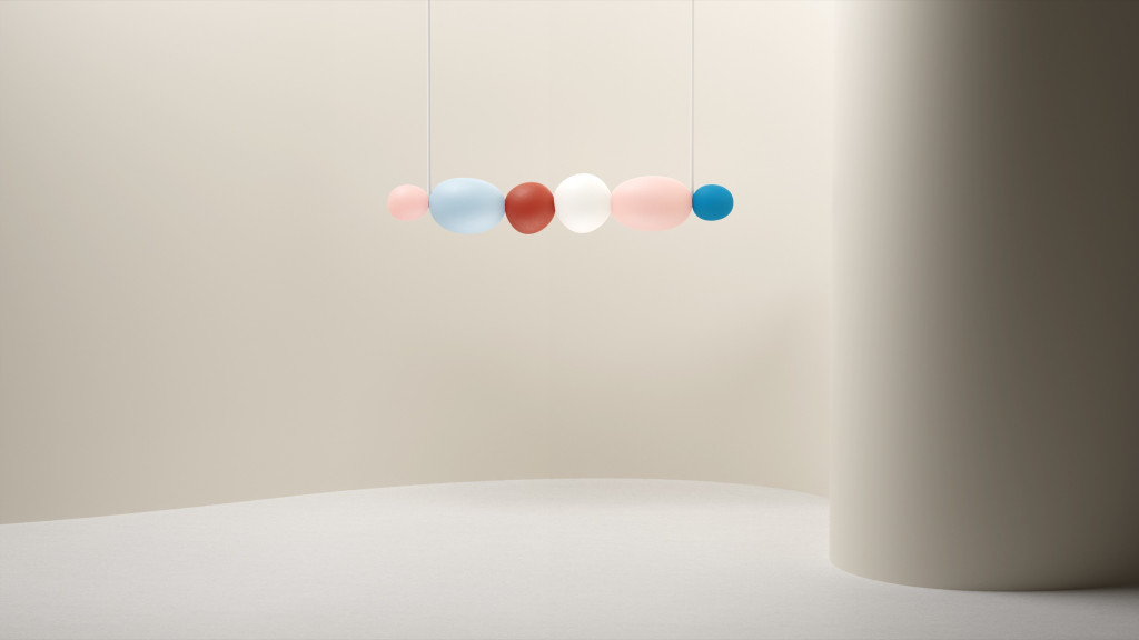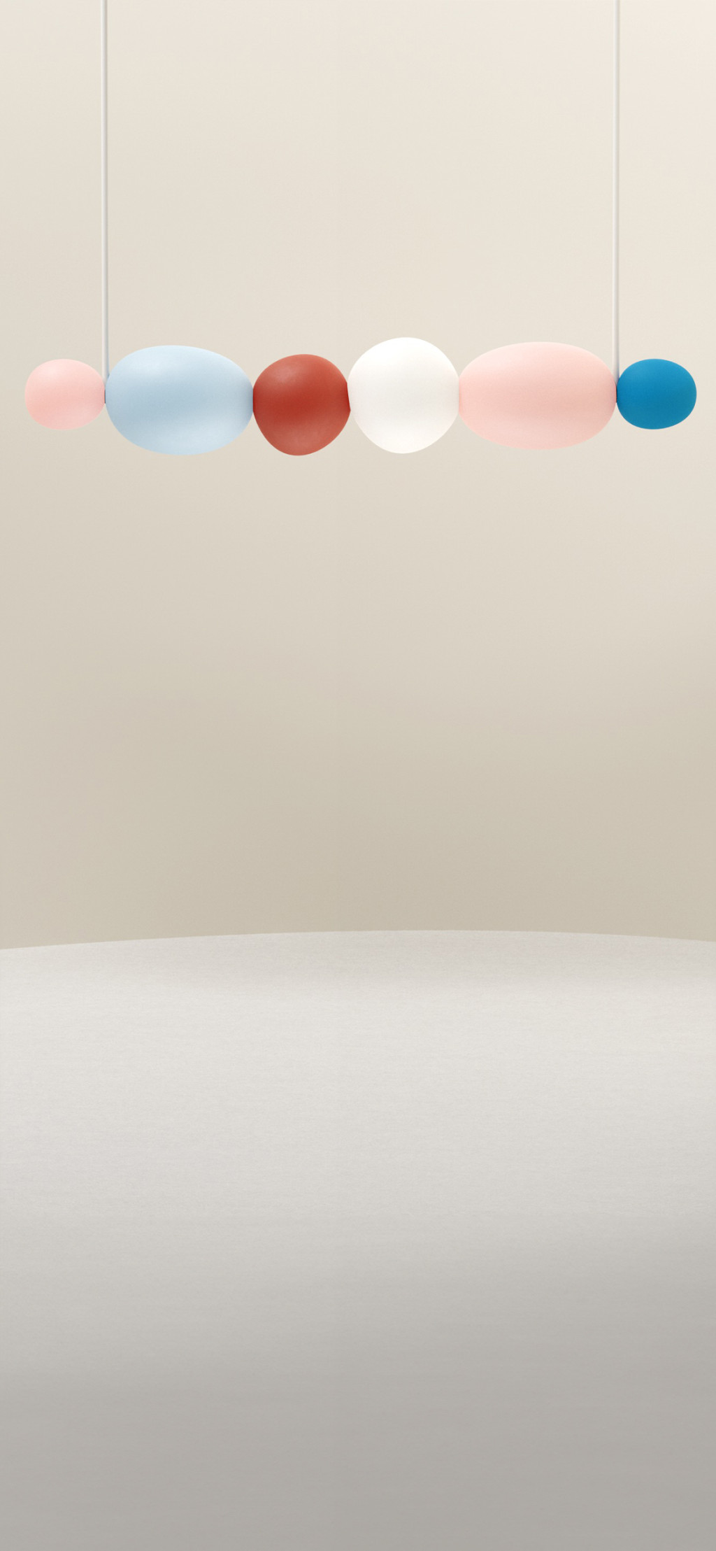 CEILING LIGHT WITH HAND-BLOWN GLASS AND PAINTED METAL STEM.