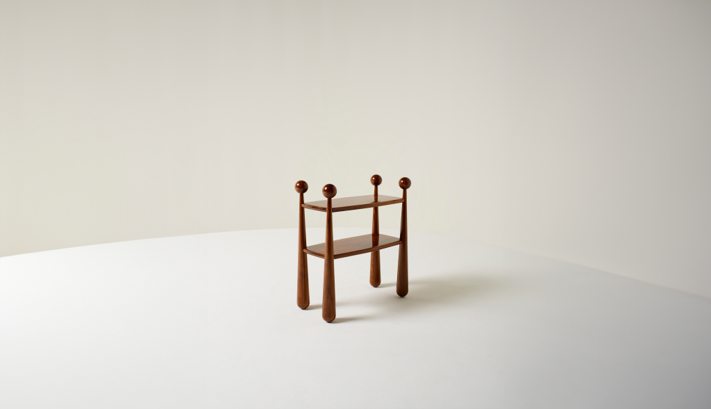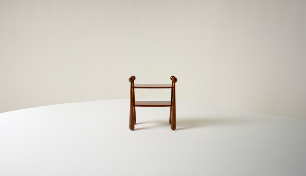 EUROPEAN WALNUT SIDE TABLE FINISHED IN FRENCH POLISH.