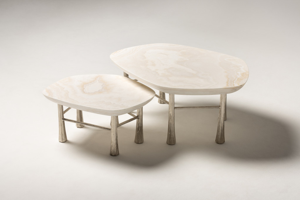 SILVER PLATED BRASS TABLE LIGHT SET WITH NINE LAB GROWN GEMSTONES AND A LINEN SHADE