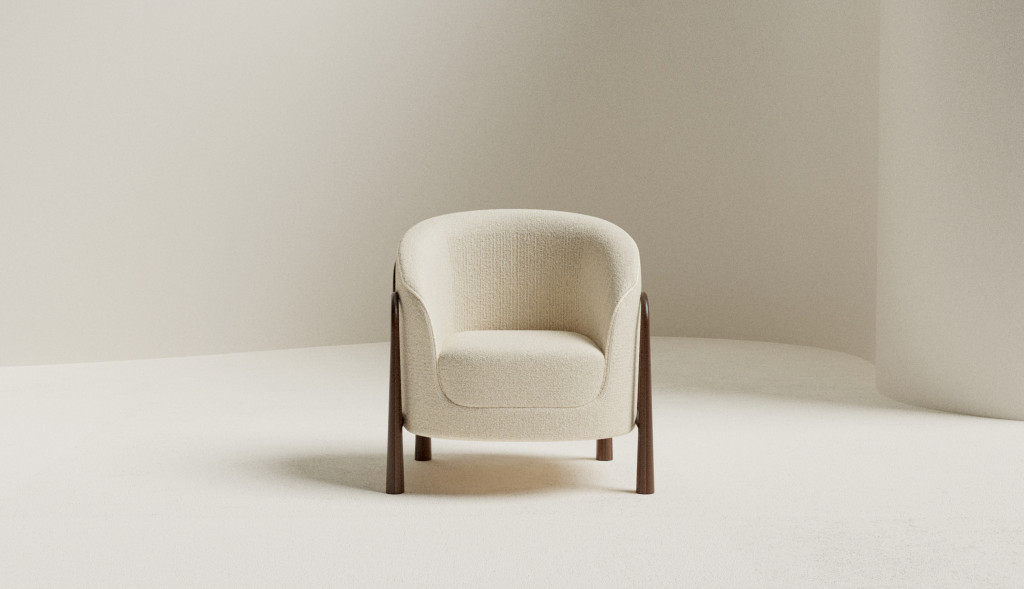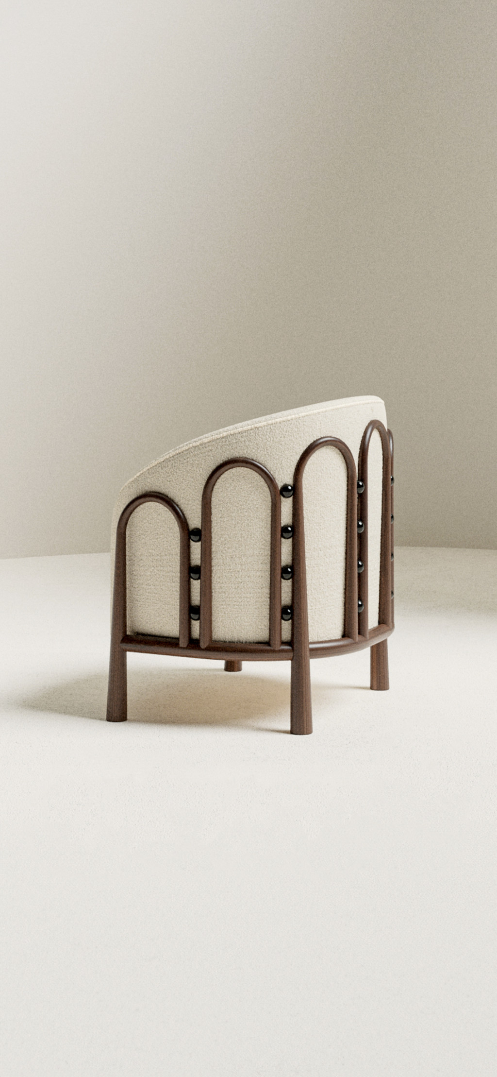 AMERICAN WALNUT ARMCHAIR WITH UPHOLSTERED SEAT.