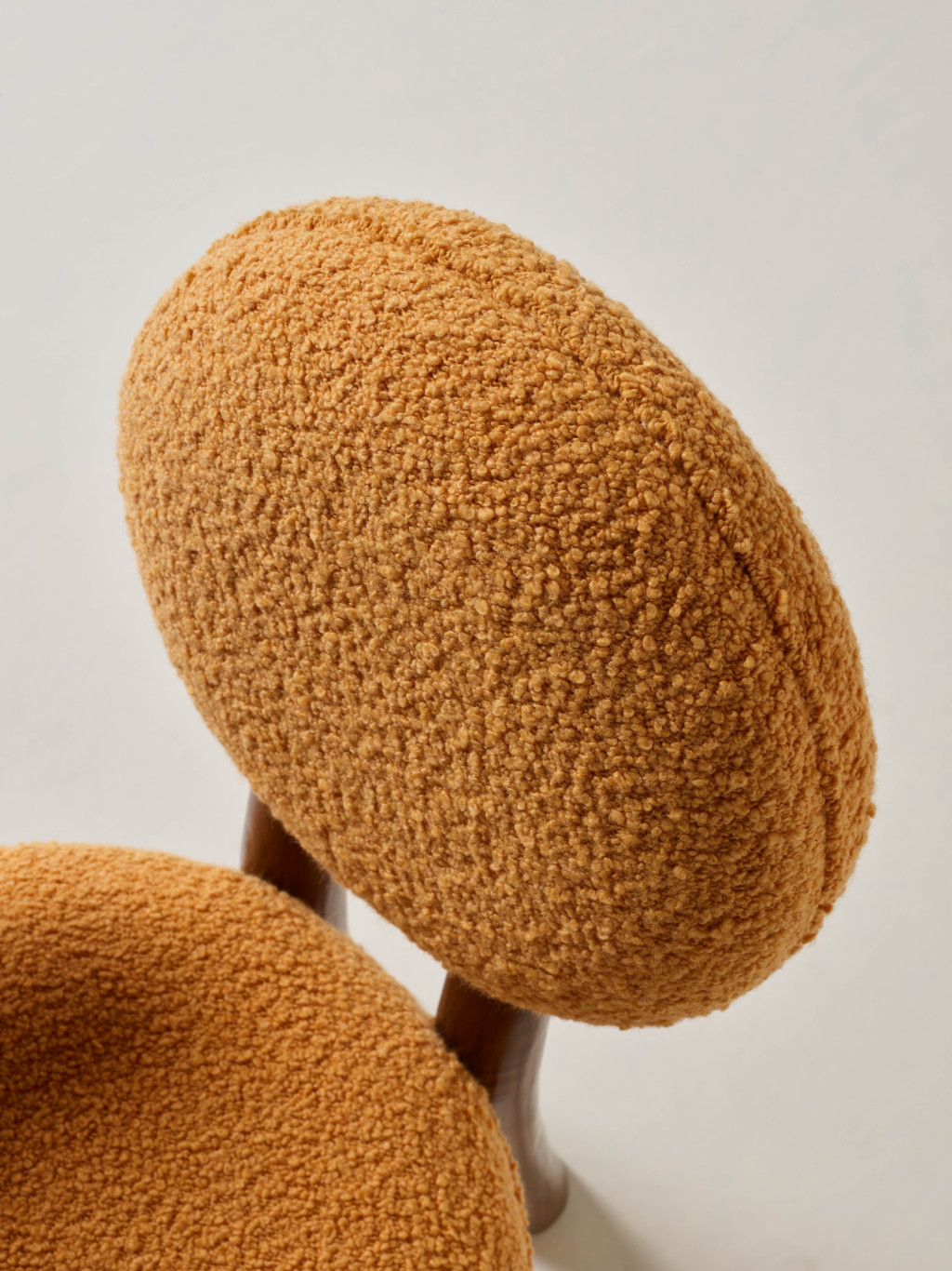 UPHOLSTERED DINING CHAIR WITH AMERICAN WALNUT LEGS.