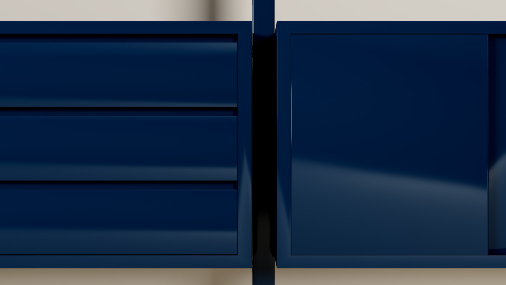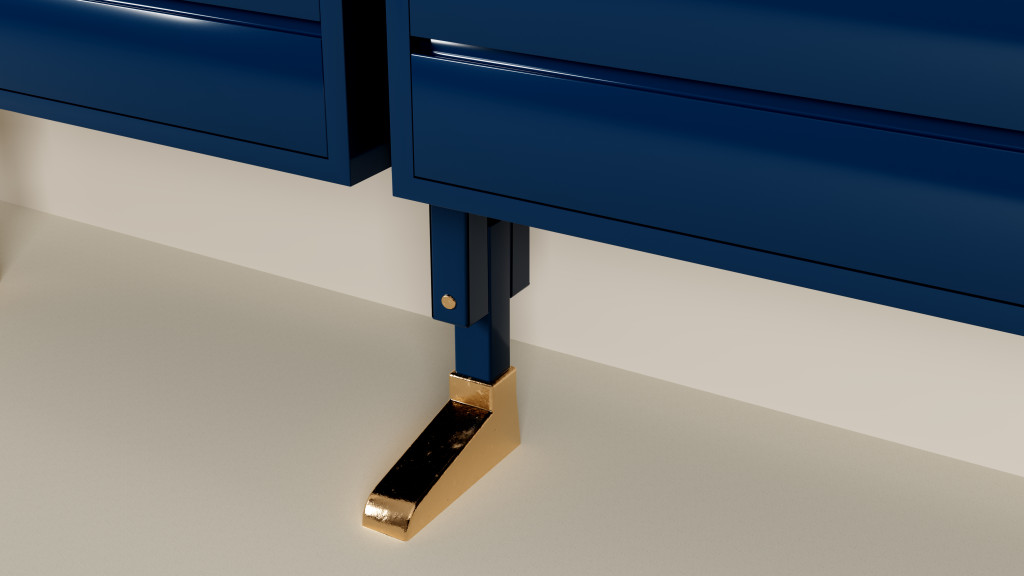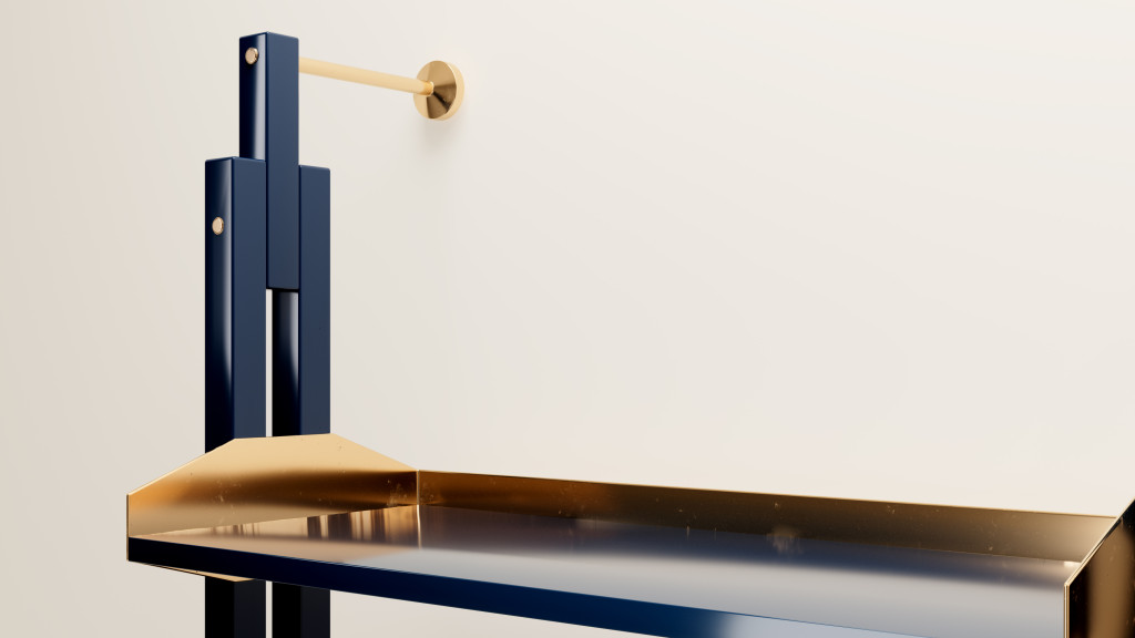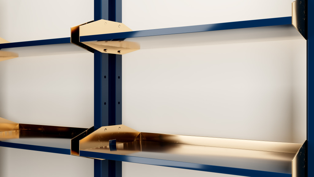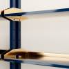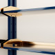SHELVING UNIT IN LACQUERED BEECH AND POLISHED BRASS