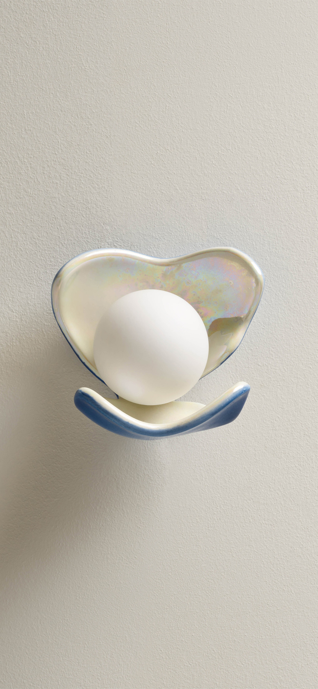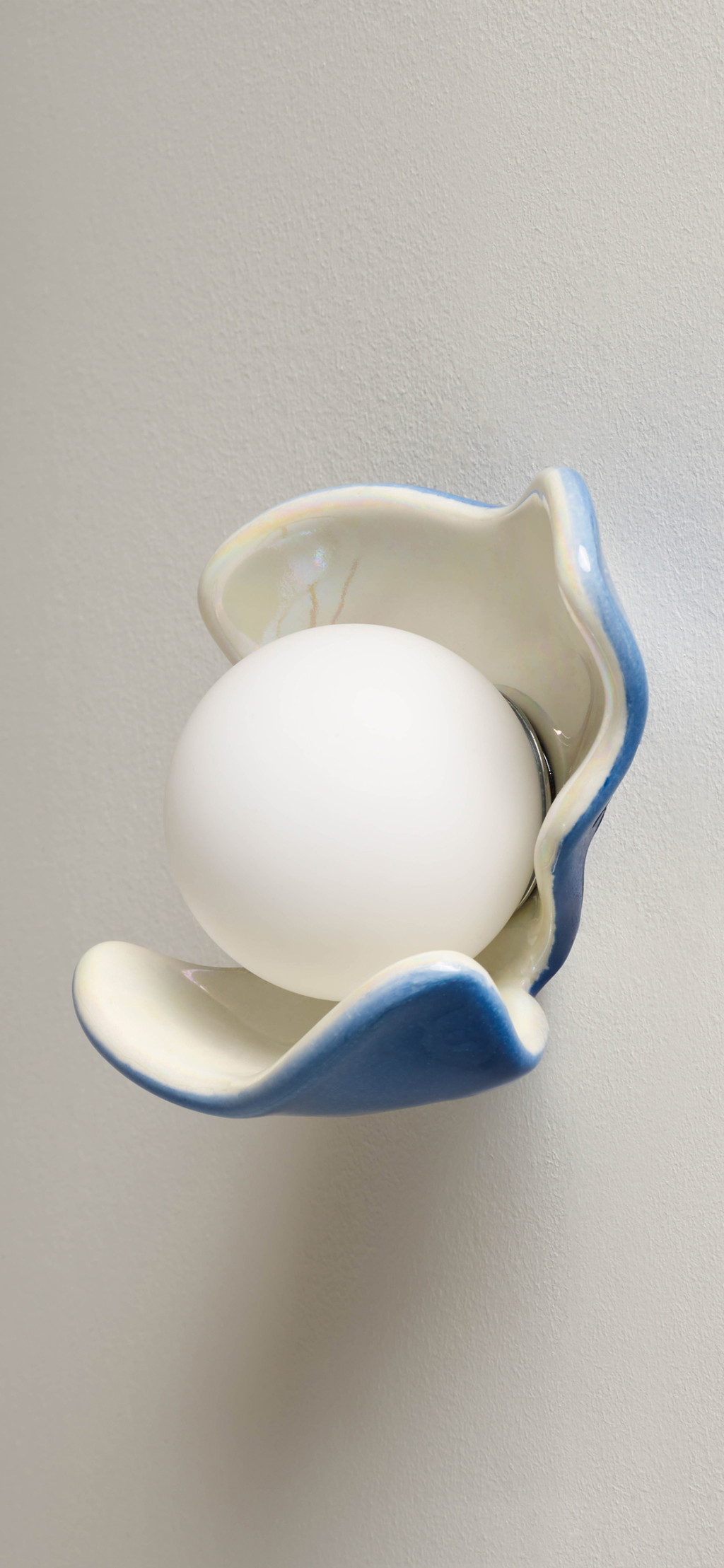 CERAMIC GLAZED WALL LIGHT SHELL WITH GLASS PEARL LIGHT.