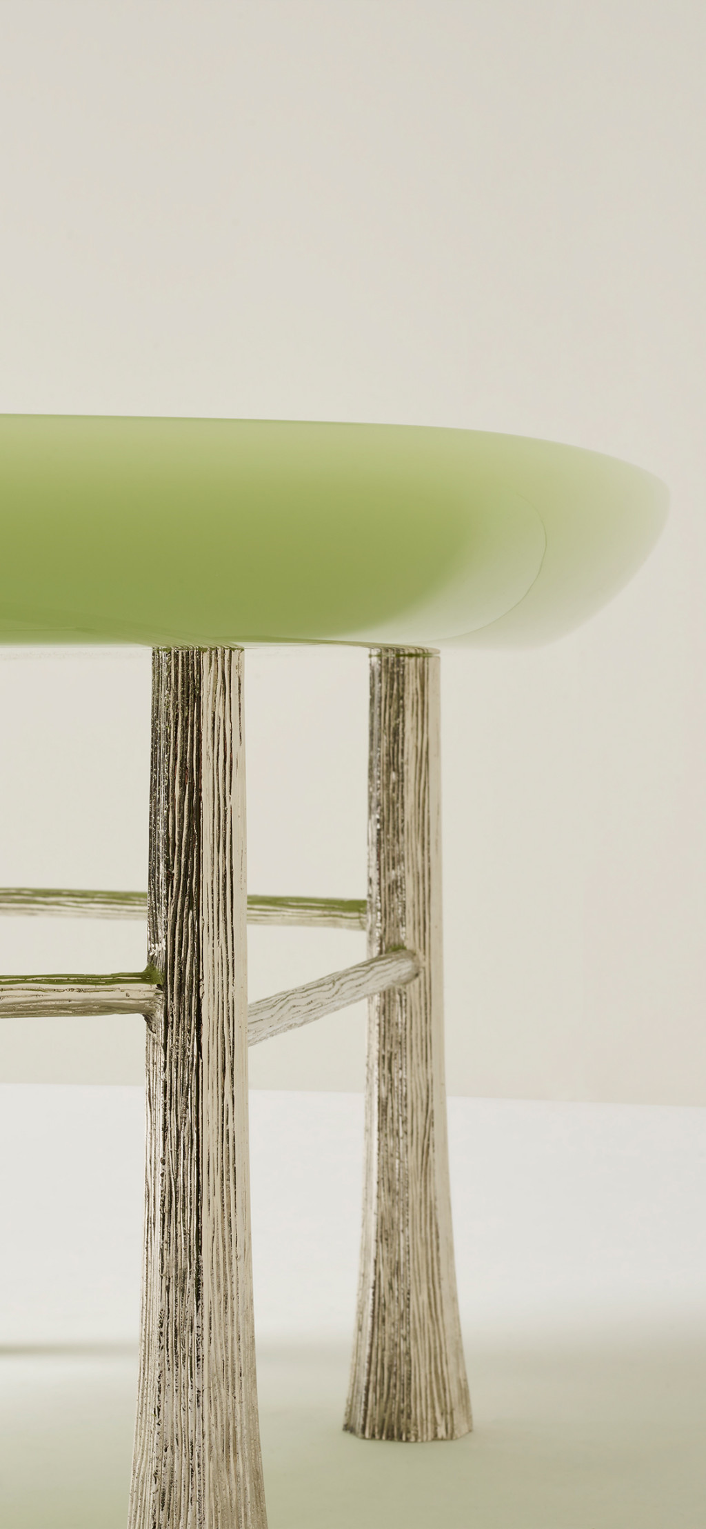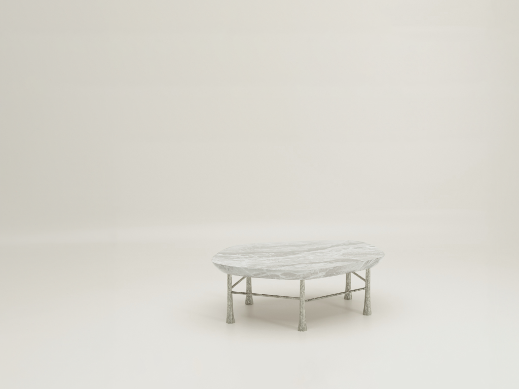 COFFEE TABLE MADE WITH NICKEL-PLATED BRONZE CAST LEGS AND A RESIN TABLETOP.