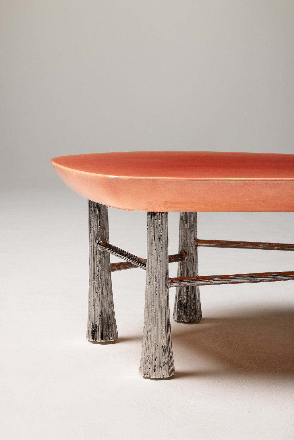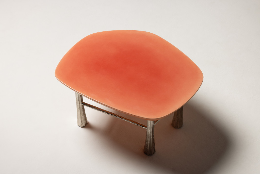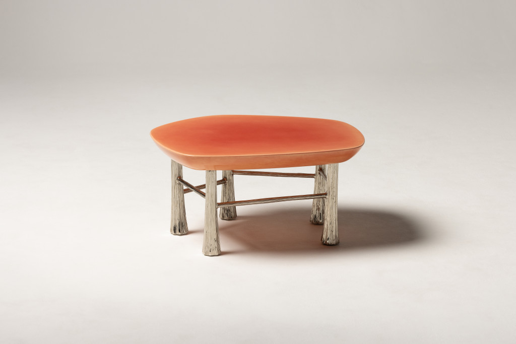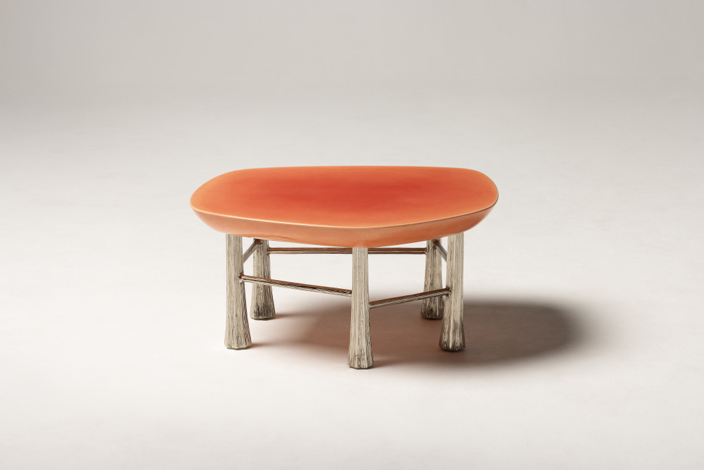 COFFEE TABLE MADE WITH NICKEL-PLATED BRONZE CAST LEGS AND A HAND-PAINTED DÉGRADÉ TABLETOP, NESTING OPTION AVAILABLE.