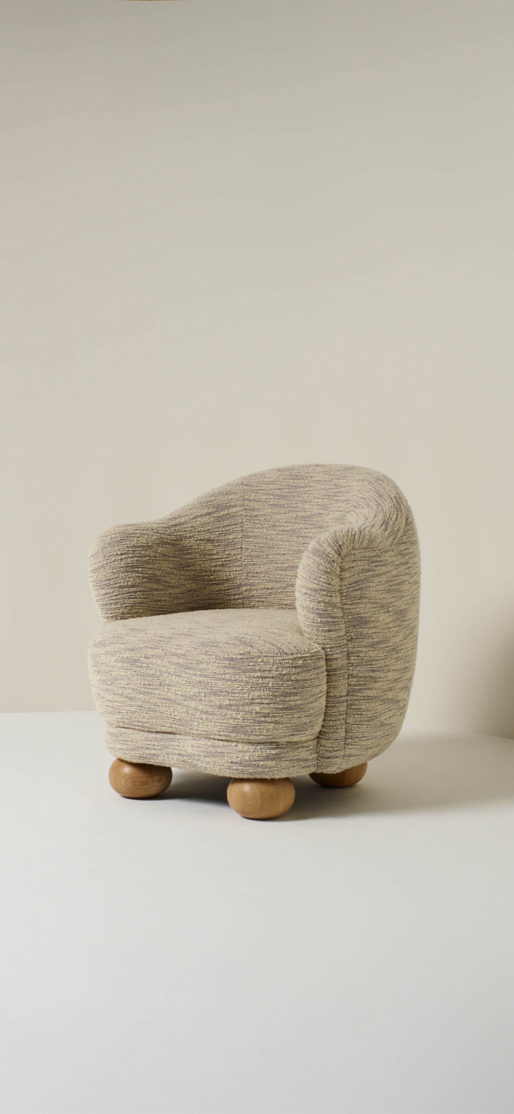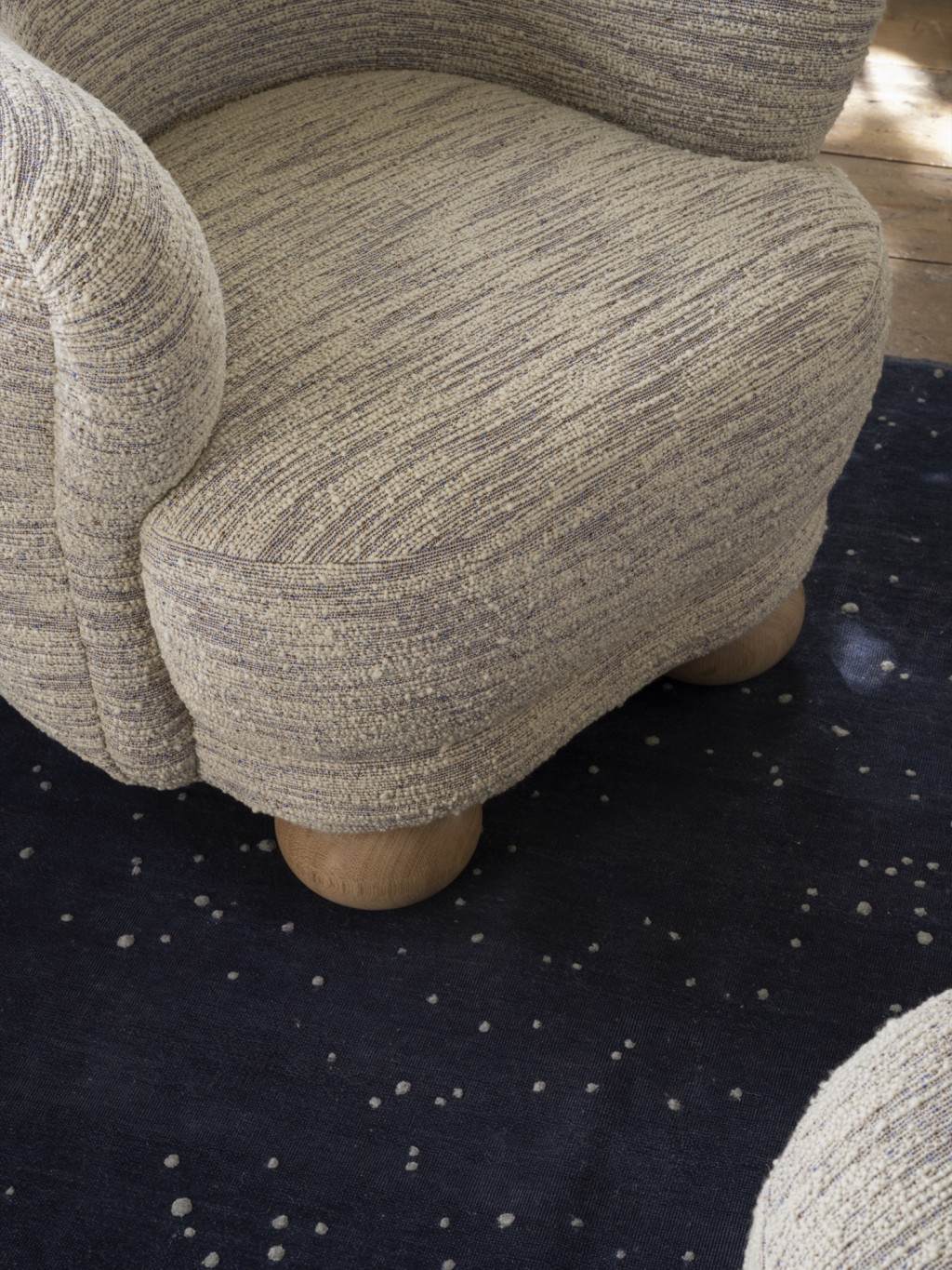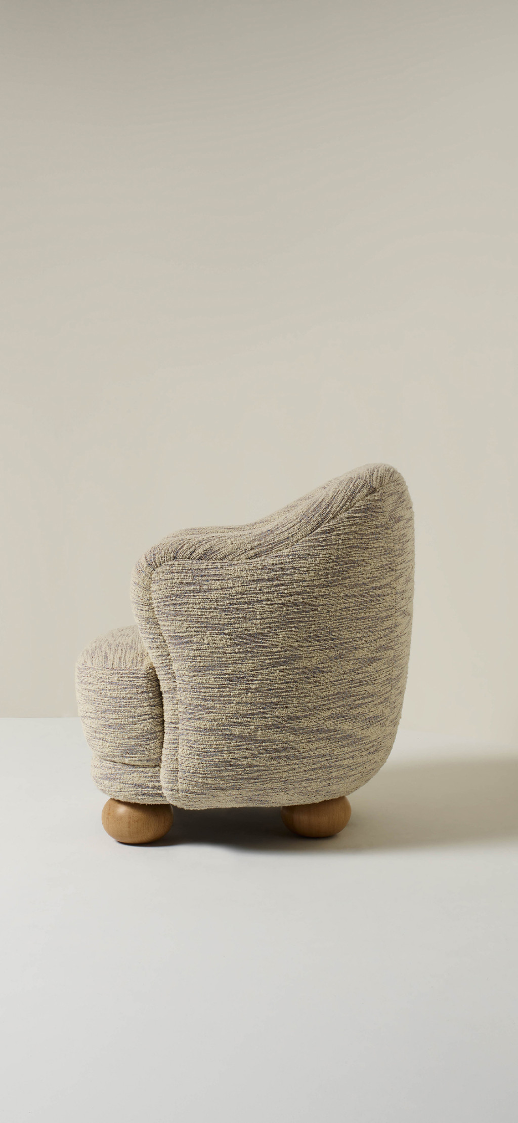 UPHOLSTERED ARMCHAIR WITH OAK FEET.