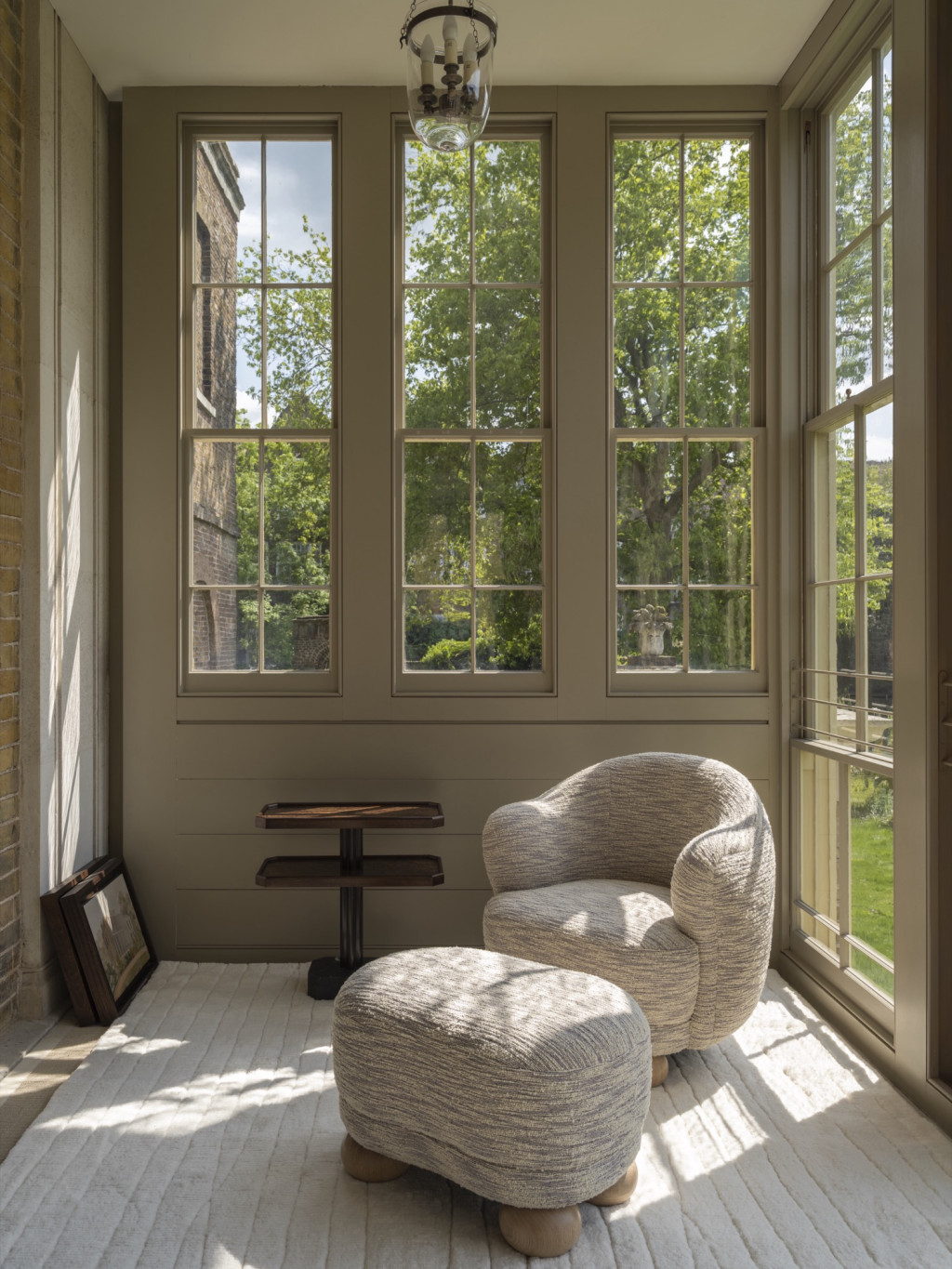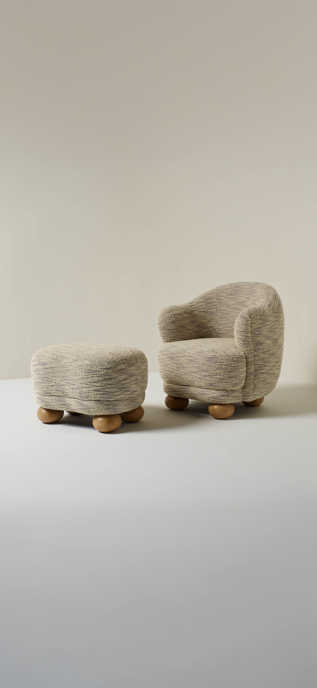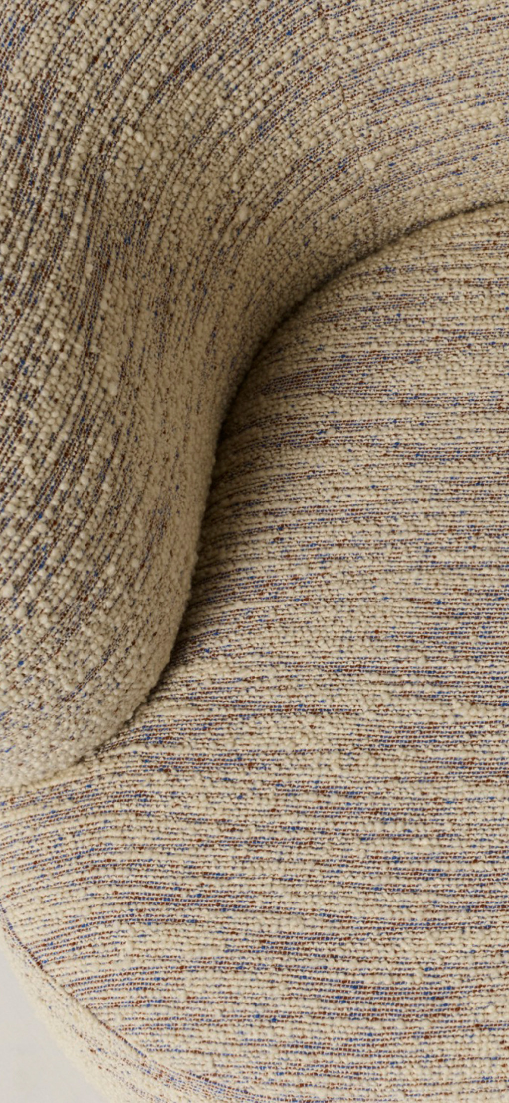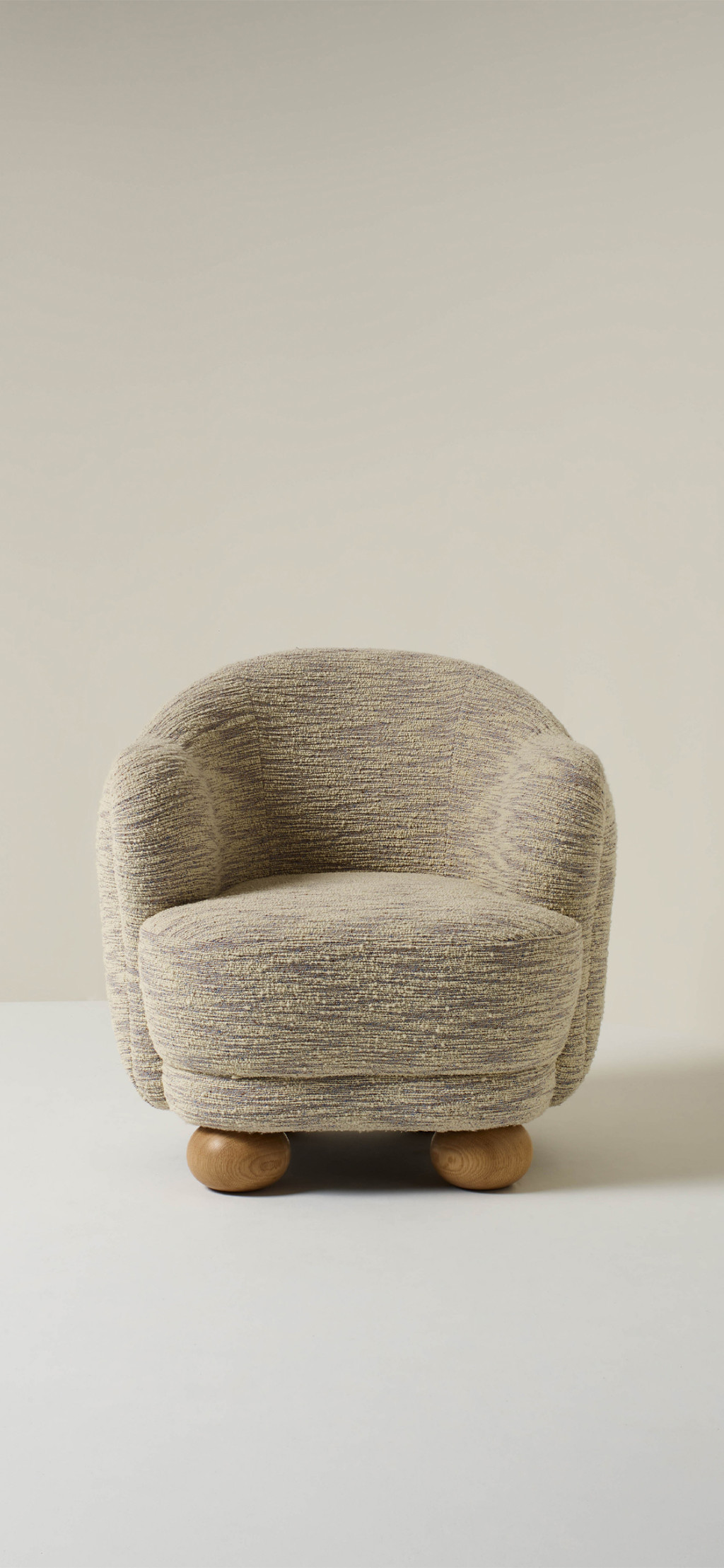 UPHOLSTERED ARMCHAIR WITH OAK FEET.