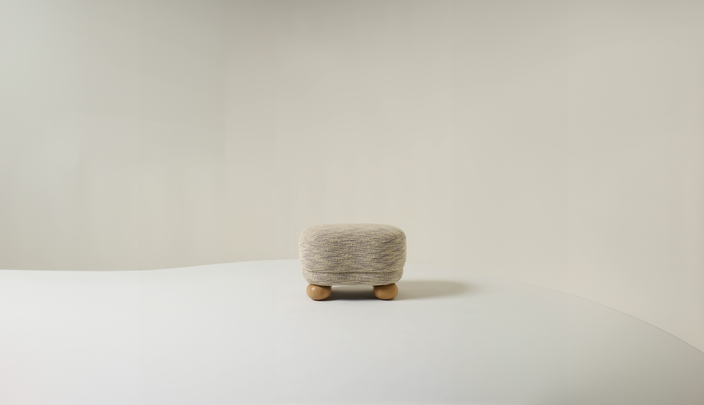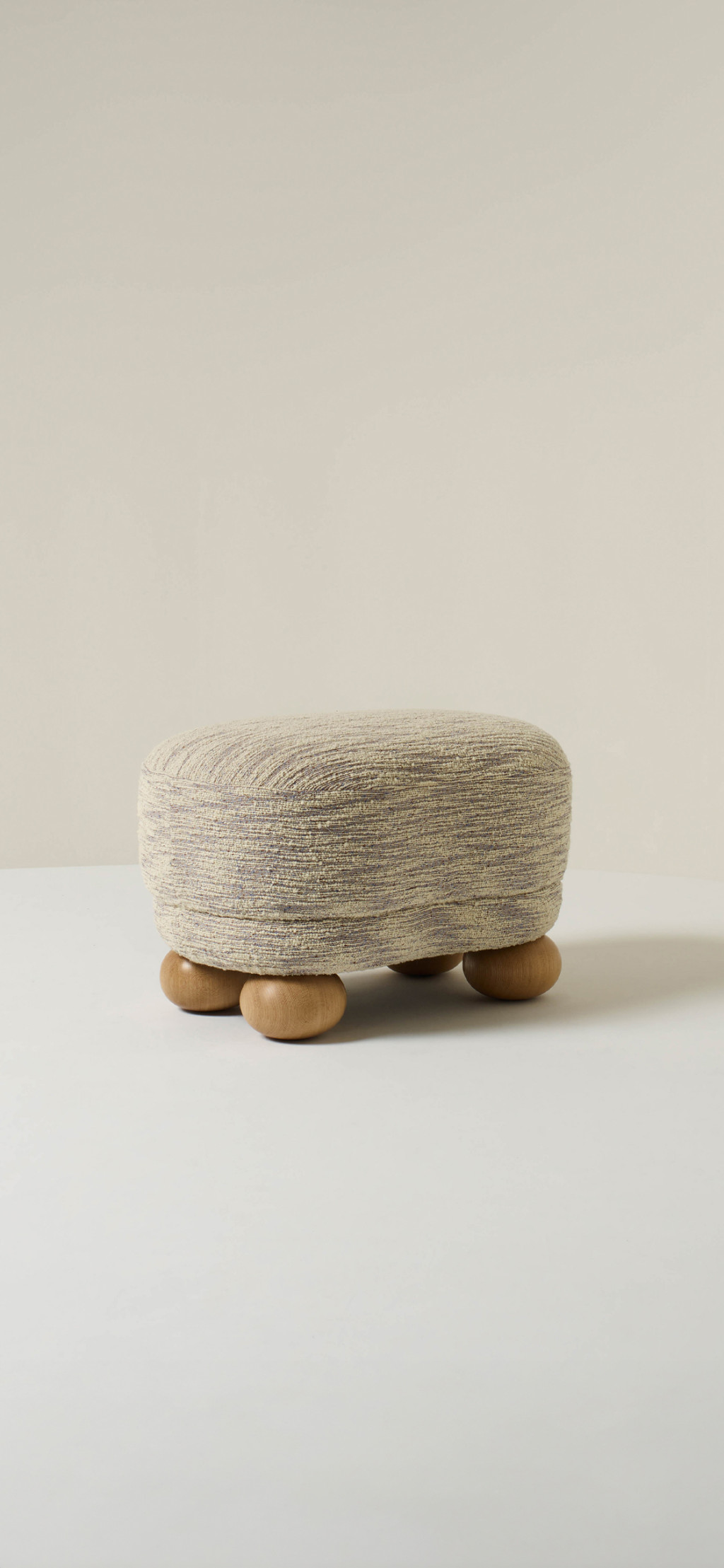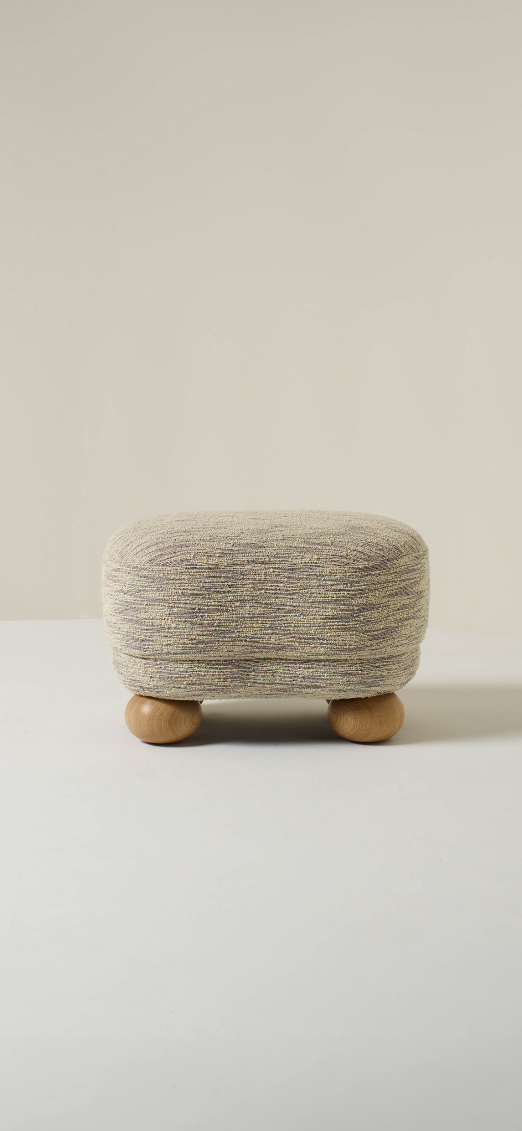 UPHOLSTERED OTTOMAN WITH OAK FEET.