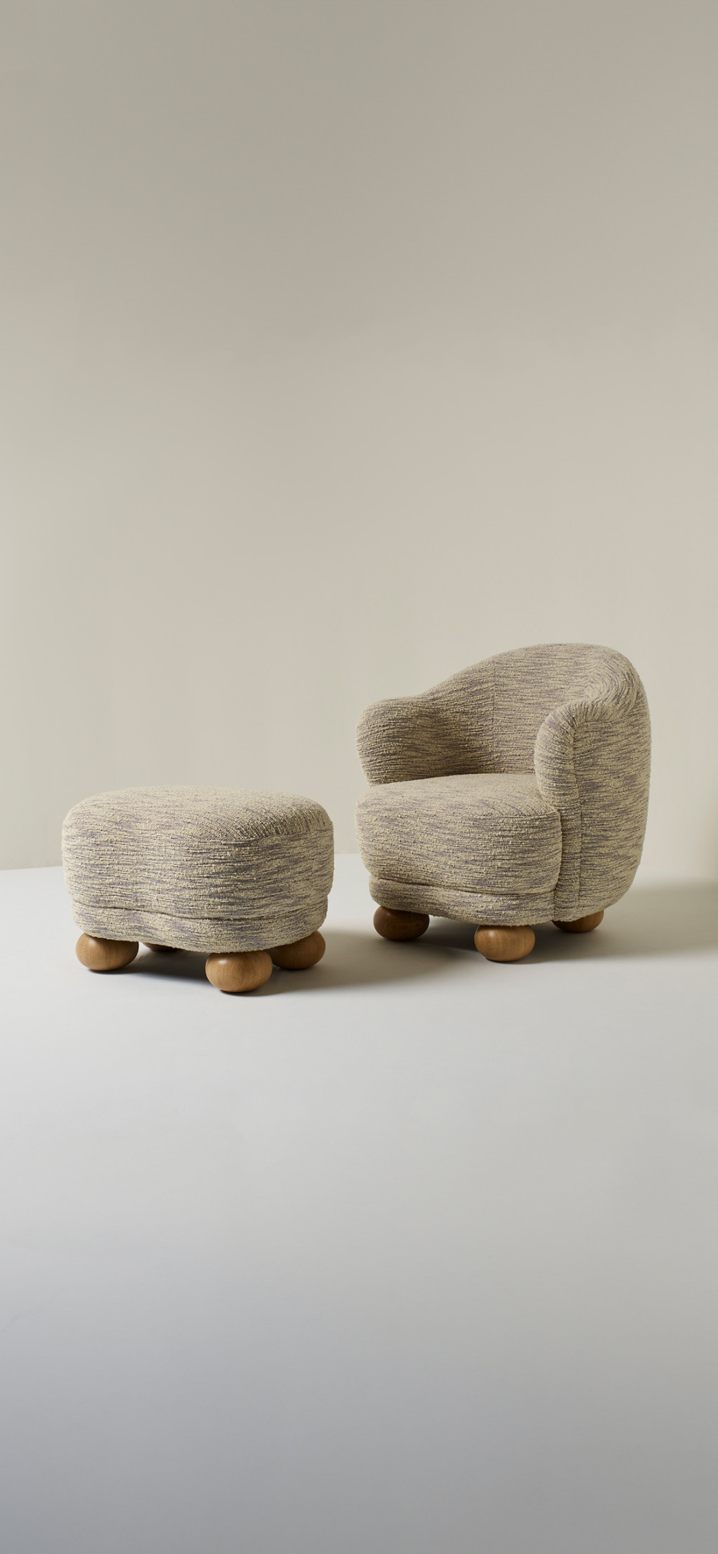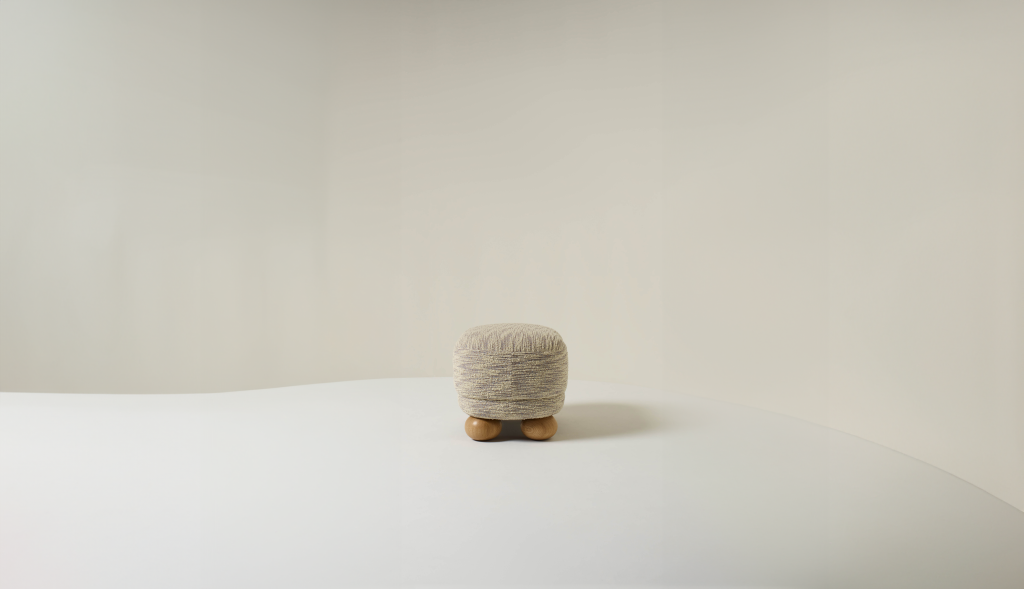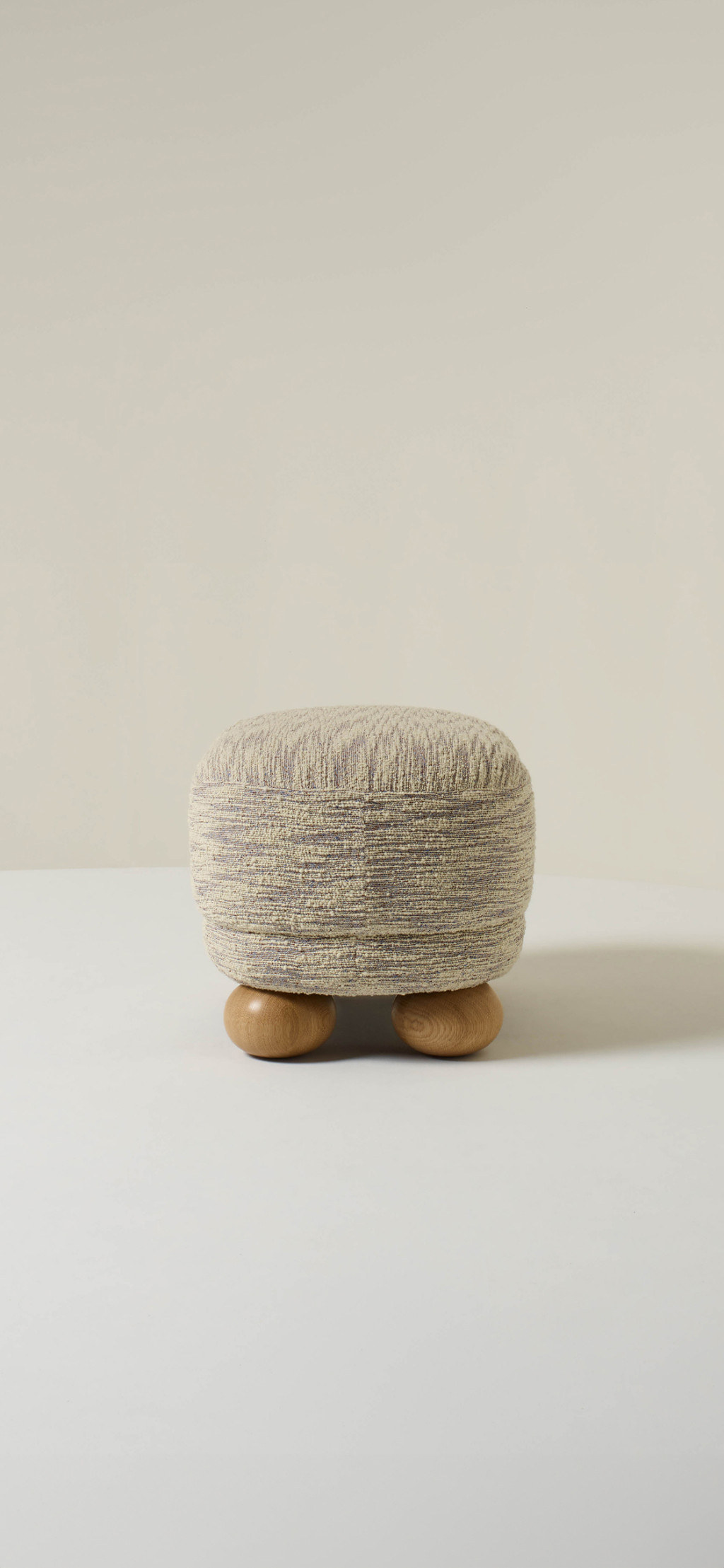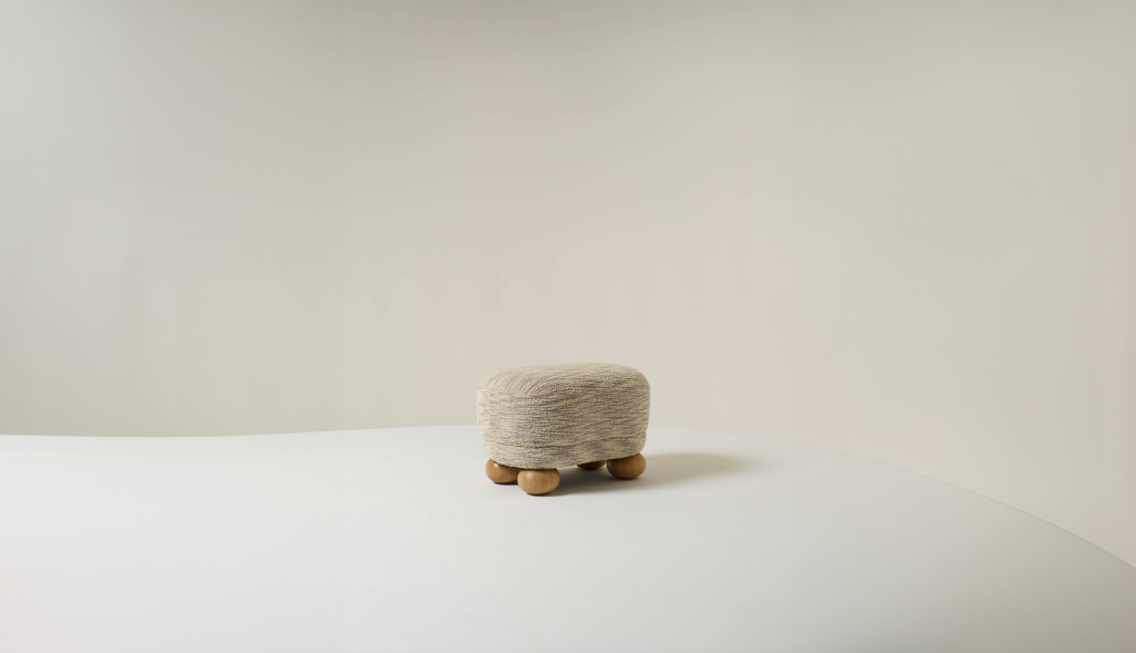 UPHOLSTERED OTTOMAN WITH OAK FEET.