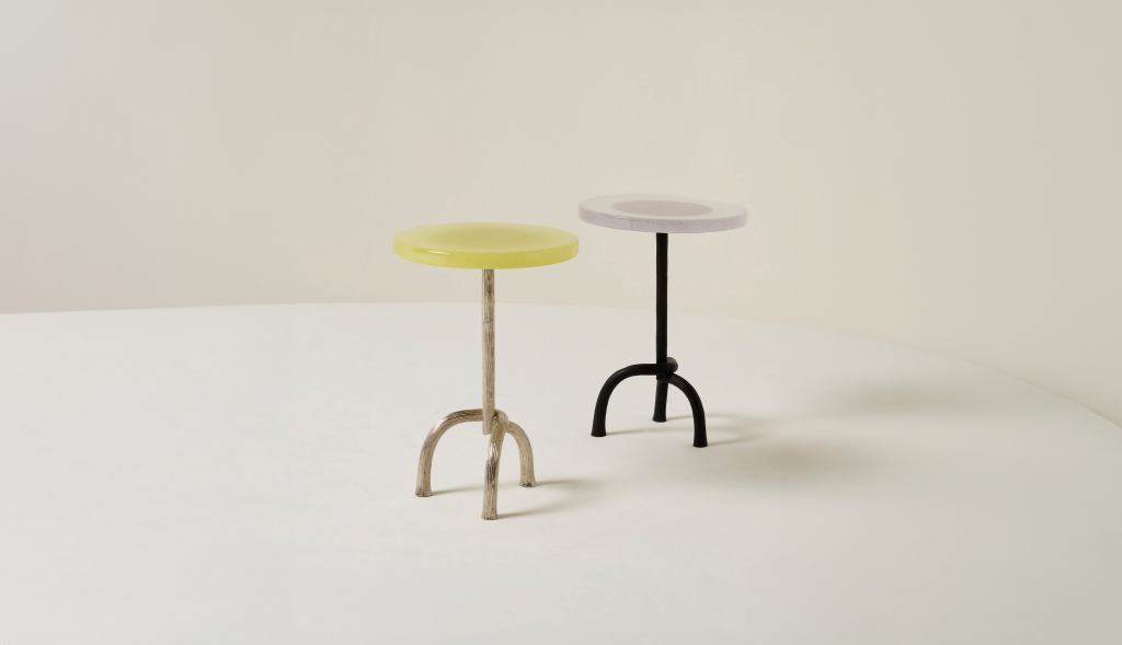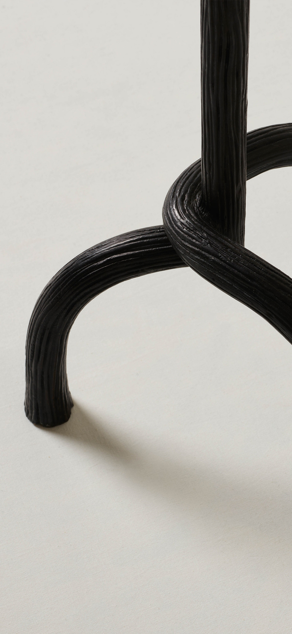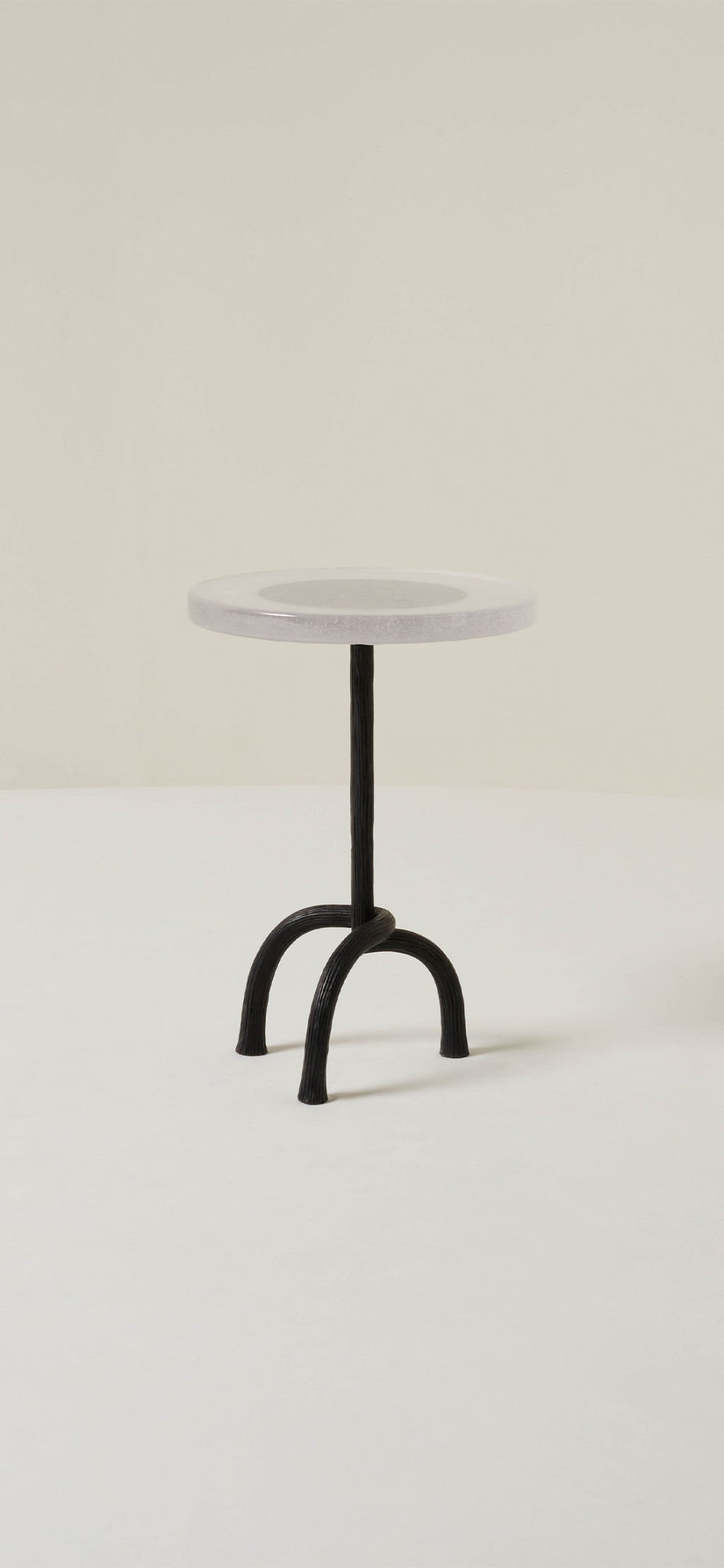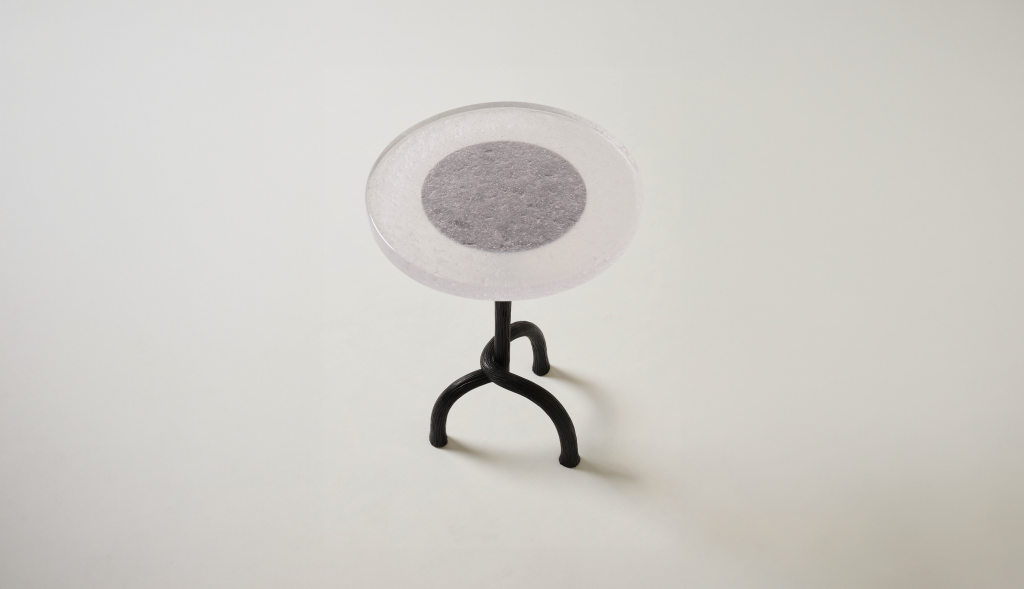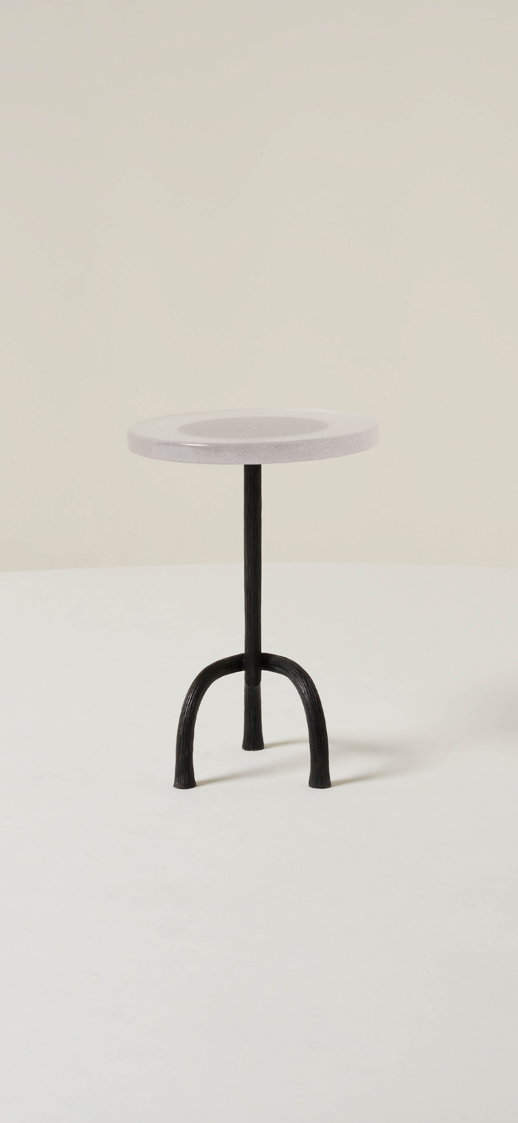 HAND-CARVED CAST BRONZE SIDE TABLE WITH A CAST GLASS TABLE TOP.