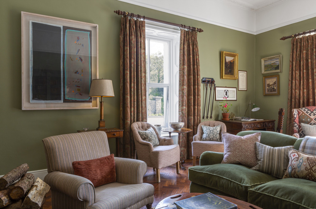 We intentionally kept the essence of the existing hotel – believing nothing should feel new but rather look fresher. A lot of visitors return every year, from all over the world, because of Ballynahinch Castle’s charm. Trying to hit that ethereal balance of keeping the homeliness of the hotel while bringing in a breath of new life was a real inspiration from the design perspective. A great deal of antique and vintage pieces were sourced to help accentuate the historical character of the spaces, and blended with new elements and existing furniture and art. Furthermore, no two rooms are the same so as to ensure the guests feel their room is a space curated over years, like a home, and continue revisiting to find new gems.