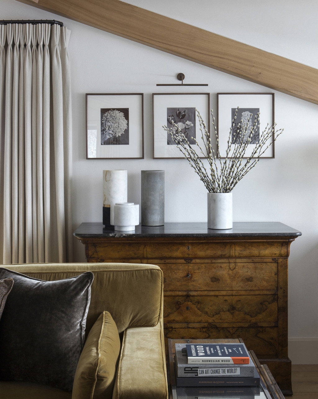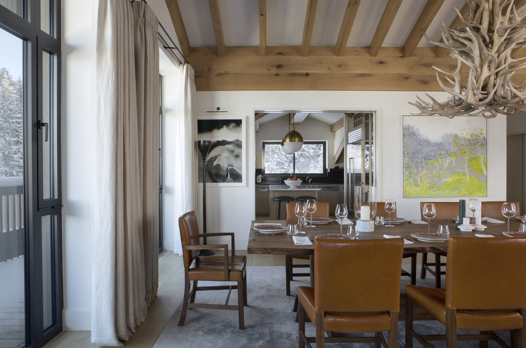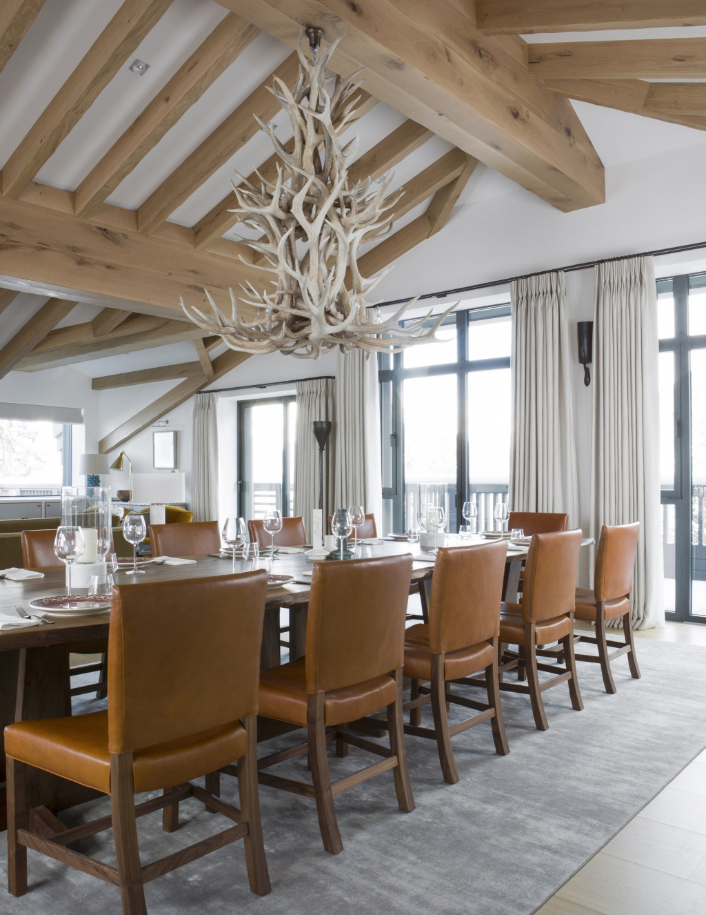 The Studio created the interior to be both family-friendly and ready to entertain. Bespoke furniture aides a natural flow between areas and ensures that the open-plan spaces are cosy and inviting. Using natural, earthy materials and delicate antiques, the Chalet celebrates the character of a traditional mountain retreat, while invoking timeless elegance.