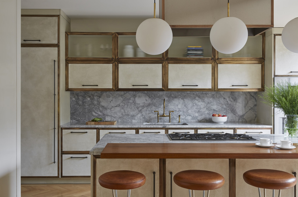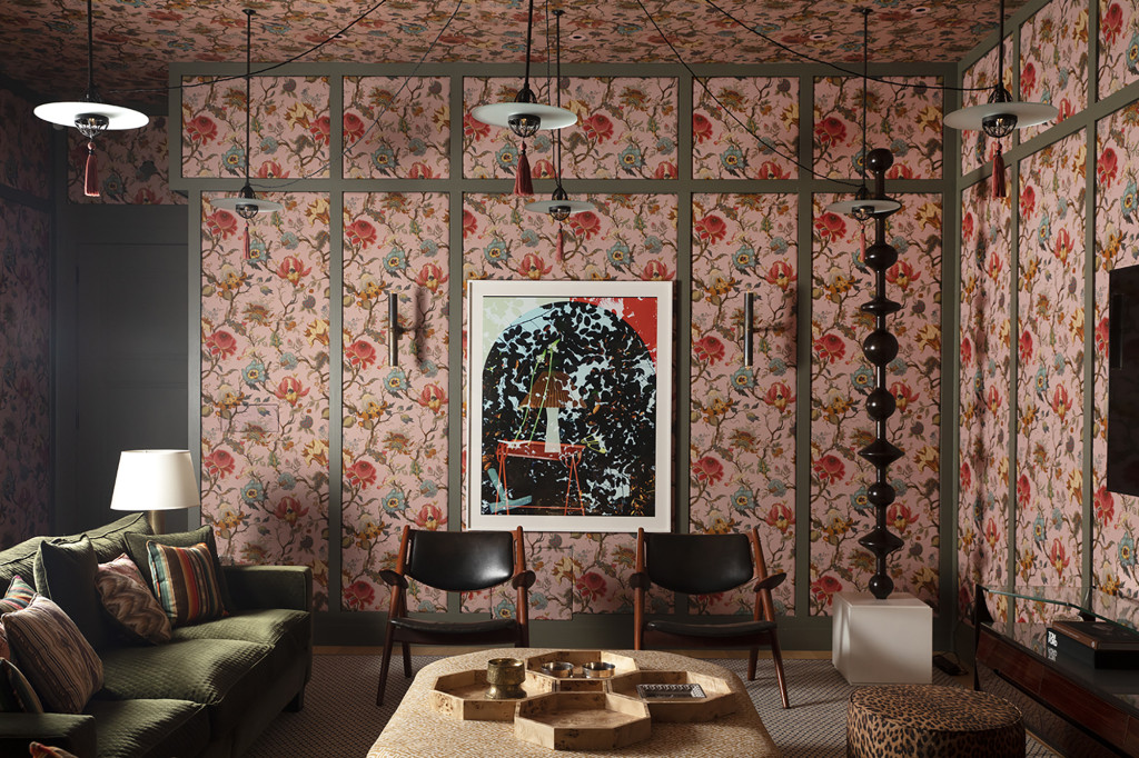 Spanning 4,015 square feet over four floors, this residence features four bedrooms, five bathrooms, a cinema room, dining room, playroom, open plan kitchen, drawing room, and two powder rooms. Each space is a feast for the eyes, layered with eclectic antiques and custom-made furniture that effortlessly reflect the client’s flair for fashion and design. Every area is considered with equal weighting, from the elaborate powder rooms to the opulent cinema room, conceived as a retreat rich with details such as a mint condition pair of original Hans Wegner armchairs and a modernist totem pole custom designed by Bryan O’Sullivan Studio.