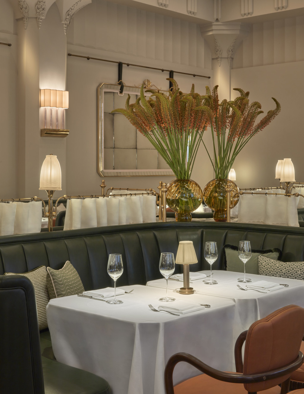 Claridge's Restaurant, a brasserie style restaurant that references the historical art deco features of the hotel while being a contemporary dining destination.