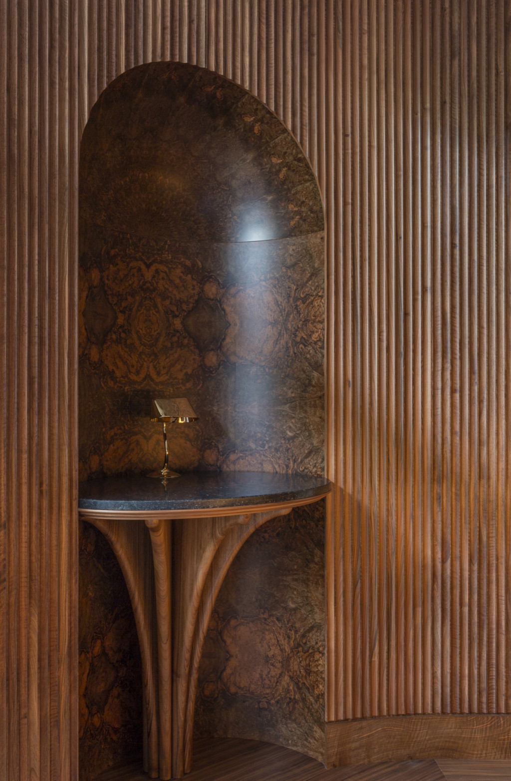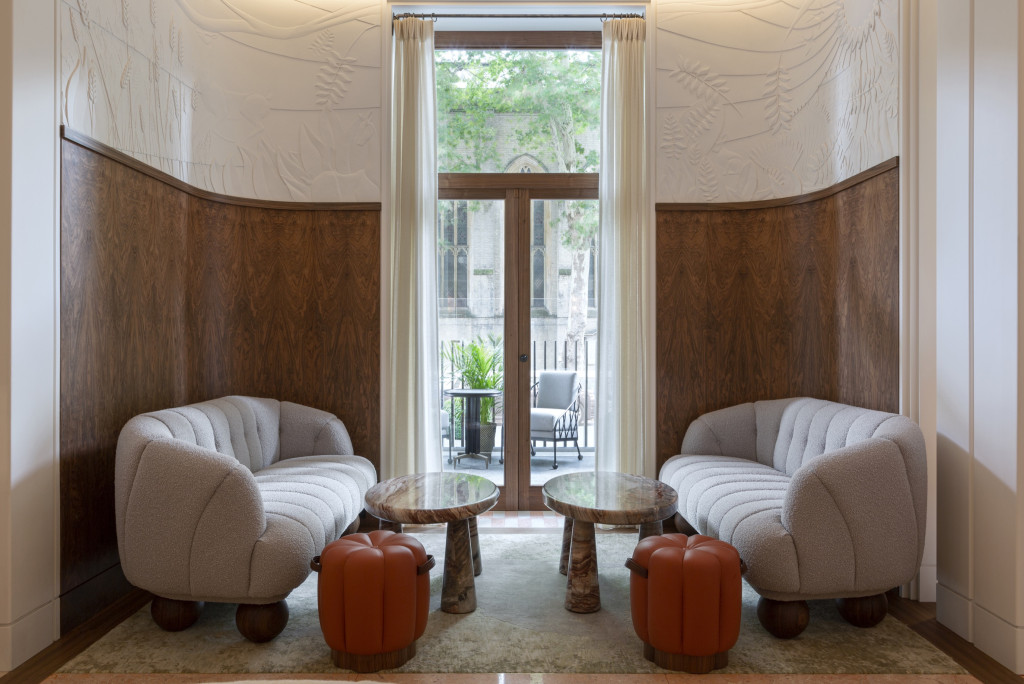 The Snug has been designed for more secluded occasions, set away from the main bar and seating up to nine guests. It features a spectacular mural, painted by New York-based artist TM Davy. The bar opens out onto an intimate terrace of only four tables, overlooking the neighbouring St Paul’s Church. Every element of The Berkeley Bar & Terrace has been designed by the studio and were realised by fine craftspeople, from the plasterwork frieze, bespoke lighting, custom furniture to the unique totem pole.