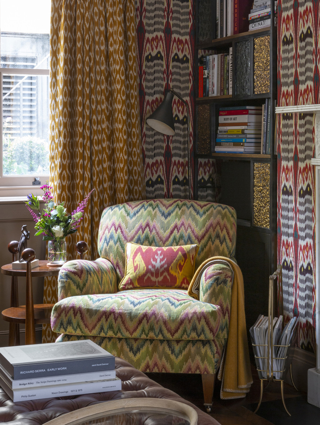 We extensively researched the hotel and found that the room was at one stage decorated in beautiful murals. We commissioned the artist Annie Morris to cap off the space with a mural that nods back to the hotel’s heritage yet brings it straight into the 21st century. Annie Morris also created the striking stained glass window opposite the pink onyx bar.